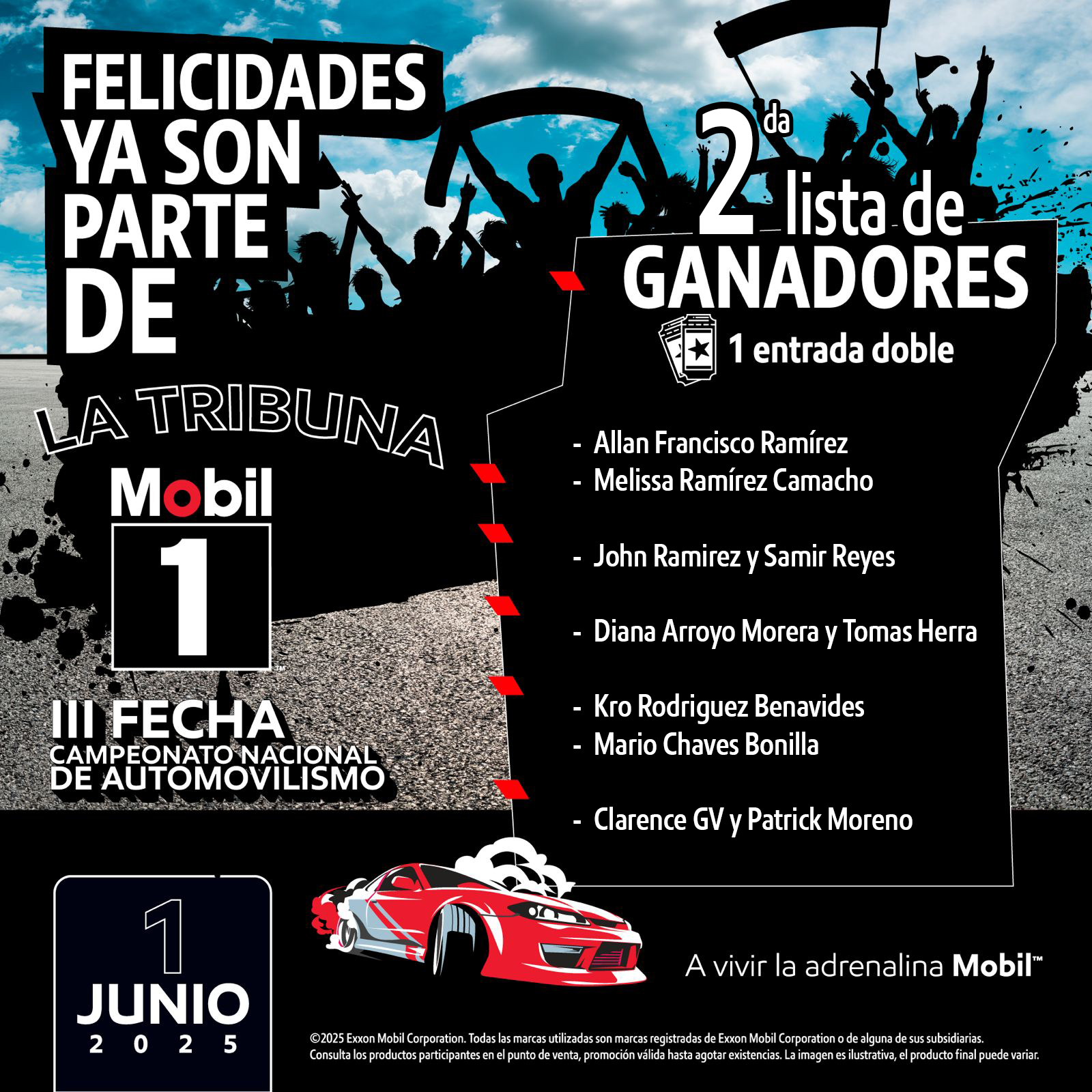 Mobil 1™ se complace en anunciar a nuestros ganadores de entradas a la III fecha del campeonato nacional de automovilismo