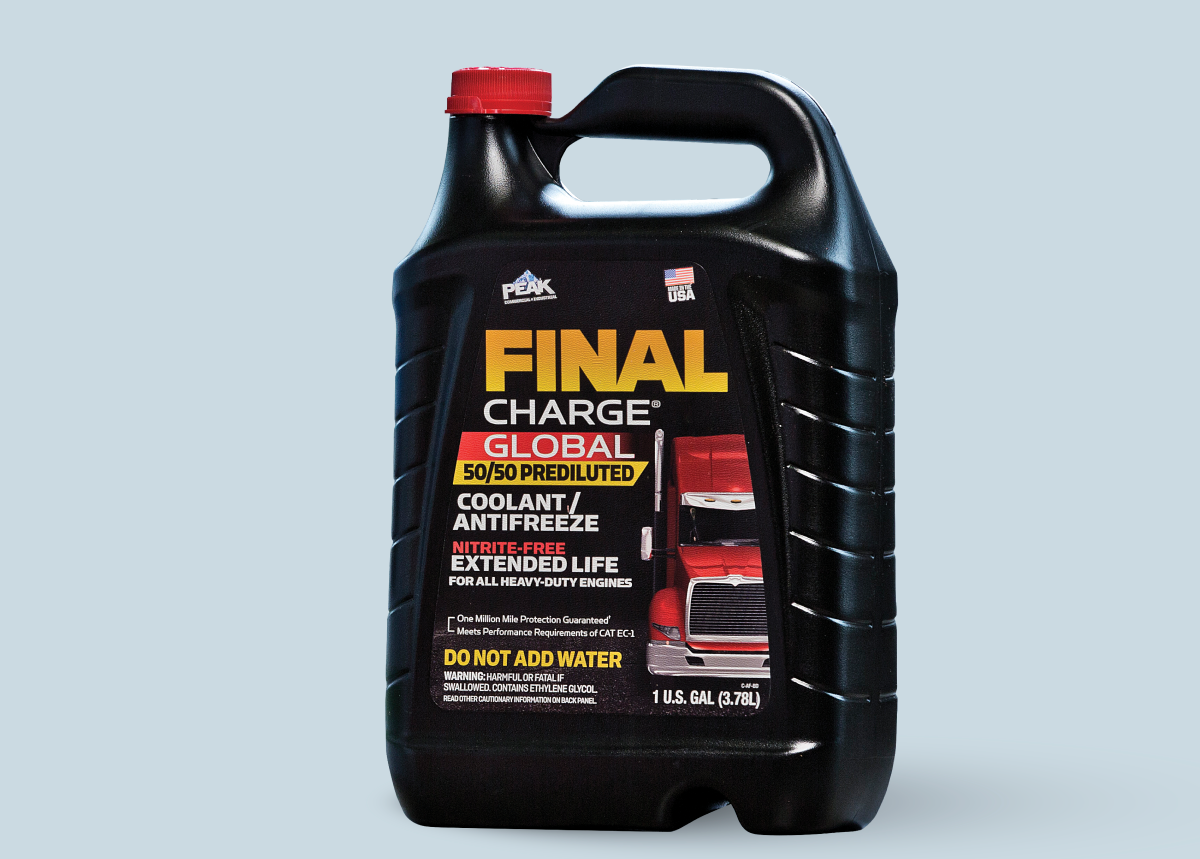 †Requiere el mantenimiento adecuado, que incluye un lavado y llenado completos del sistema de enfriamiento y el llenado posterior, según sea necesario, con anticongelante/refrigerante prediluido de 50/50 FINAL CHARGE® SERIE PRO o una mezcla 50/50 de concentrado de anticongelante/refrigerante FINAL CHARGE® SERIE PRO y agua. Para garantizar la protección, no se pueden usar otros productos o suplementos de productos. Visite www.peakhd.com para obtener todos los detalles de la garantía. Siga las recomendaciones del OEM para el mantenimiento especificado.
