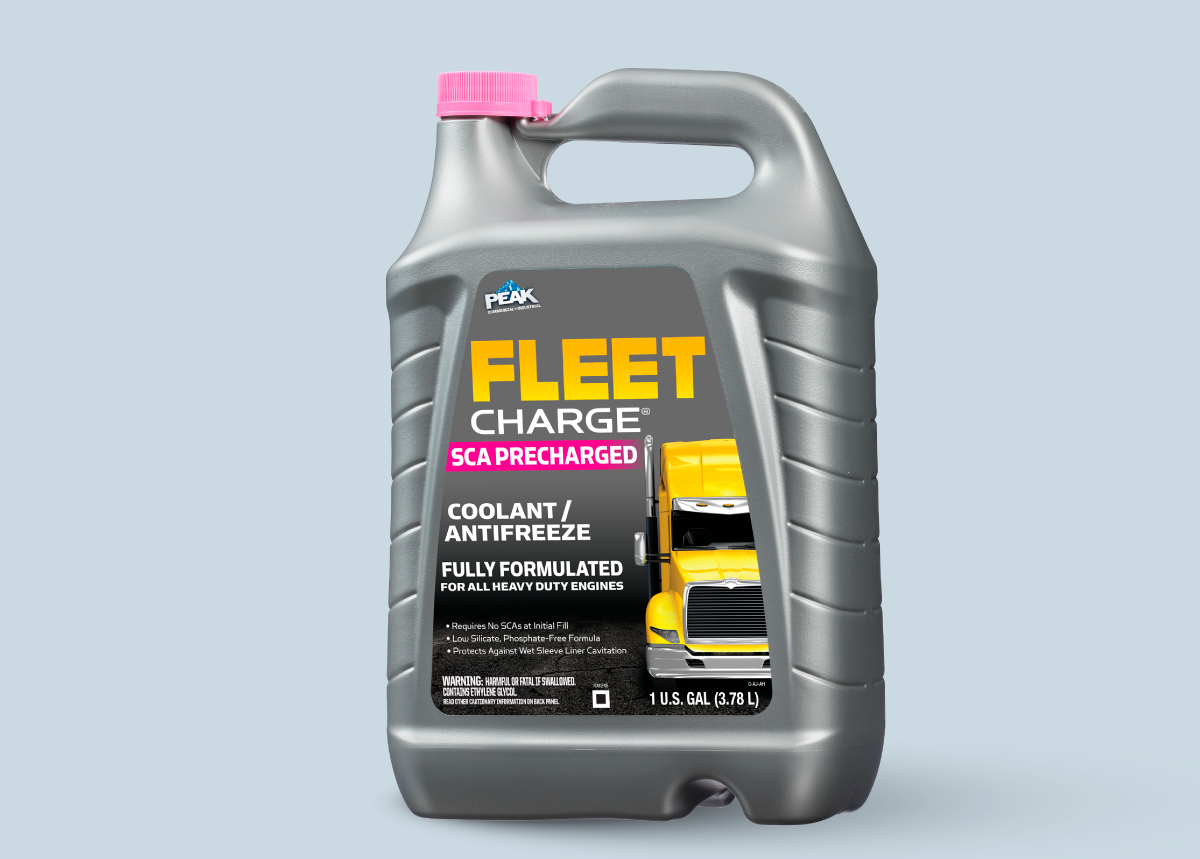 Guía de seguridad y medio ambiente: El refrigerante/anticongelante FLEET CHARGE® SCA PRECHARGED se basa en etilenglicol virgen y debe mantenerse fuera del alcance de niños y animales para evitar la exposición. Se ha añadido un agente amargo para ayudar a reducir la posibilidad de ingestión accidental de este producto. Puede encontrar más información con directrices sobre salud, seguridad y eliminación en la Ficha de Datos de Seguridad correspondiente, que puede obtenerse en peakhd.com. Deseche siempre el refrigerante usado de acuerdo con las directrices locales, estatales y federales.